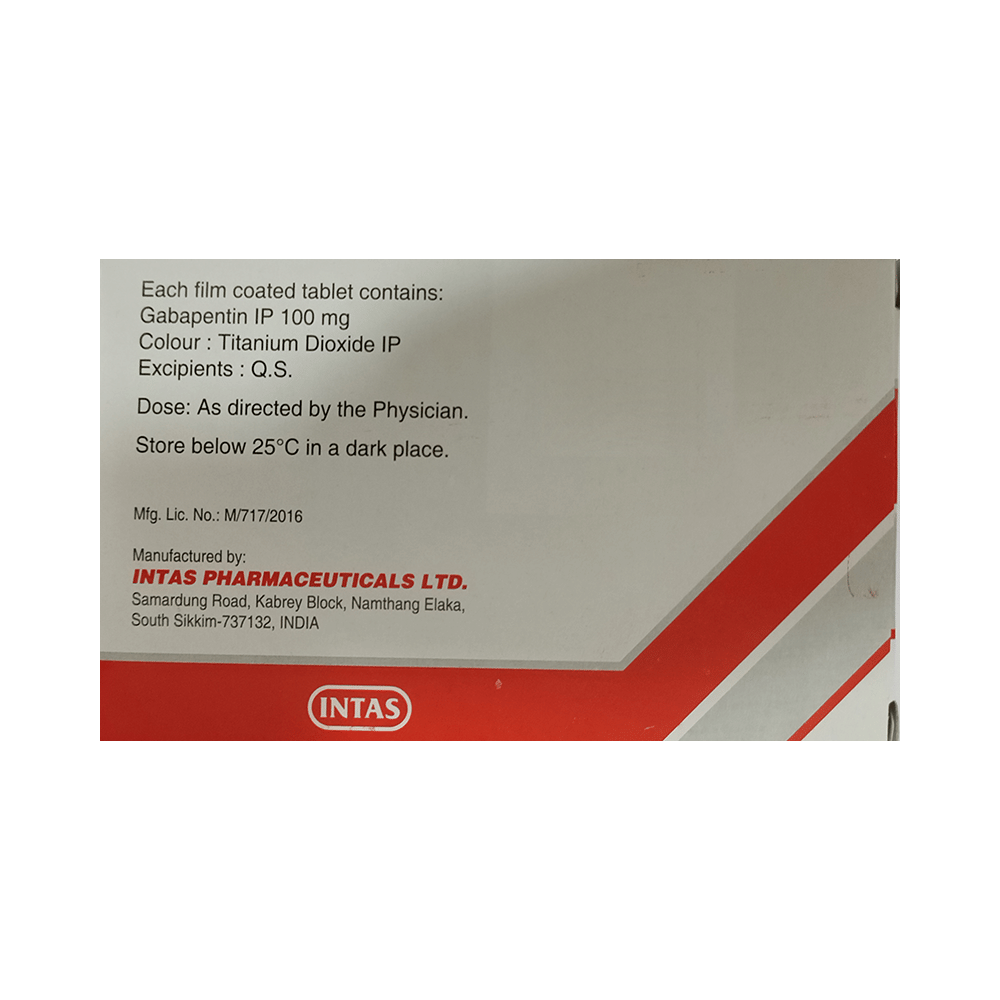 Gabapin 100 Tablet is a medicine used to relieve the pain caused by nerve damage (neuropathic pain) due to various conditions like diabetes, shingles (herpes zoster infection), spinal cord injury, etc. It is also used to treat certain types of seizures (fits) in combination with other medicines. Gabapin 100 Tablet belongs to the anti-epileptic group of medicines. You may take it with or without food, but it is important to take this medicine at the same time each day to get the most benefit. The exact dose and duration of treatment will depend on your condition and how you respond to it. Your doctor will probably start this medicine at a low dose and increase it gradually. It may take a few weeks for the medicine to work properly. Follow your doctor’s instructions and continue taking it regularly until your doctor advises you to stop. Do not miss any dose, otherwise, your condition may worsen.Most people taking Gabapin 100 Tablet do not experience any side effects. The most common ones are feeling sleepy, dizzy, or tired (fatigue). These are usually mild and go away by themselves as your body gets used to the medicine. Most side effects are not serious and do not need medical attention. Talk to your doctor if any of the side effects persist or worry you.You should avoid drinking alcohol along with this medicine as it may lead to excessive sleepiness and dizziness. Let your doctor know right away if you develop any unusual mood changes like anxiety, agitation, depression, or thoughts about harming yourself.Before taking Gabapin 100 Tablet, you should tell your doctor if you have any kidney-related problems or if you are more than 65 years old. Your doctor may prescribe a different dose in such people. Women who are pregnant, breastfeeding, or planning to become pregnant should also consult their doctor before using this medicine.