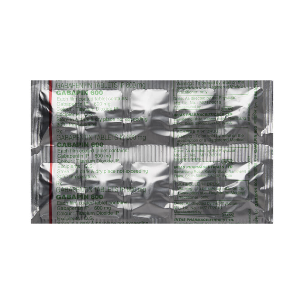 Gabapin 600 Tablet is an antiepileptic medication. When given for epilepsy, it is believed to work by reducing the abnormal electrical activity in the brain, thus preventing seizures. It is also used to treat nerve pain where it blocks pain by interfering with pain signals traveling through the damaged nerves and the brain.