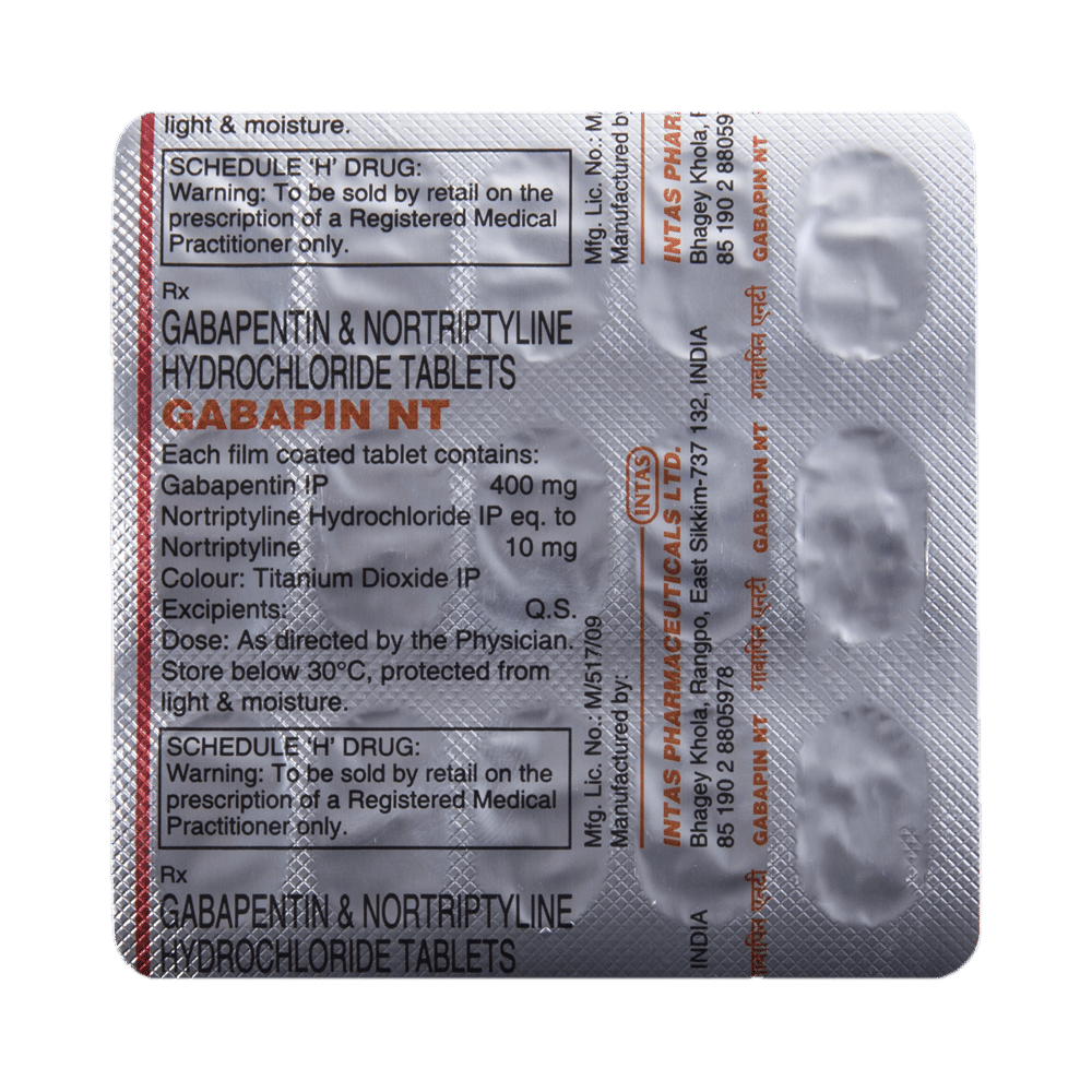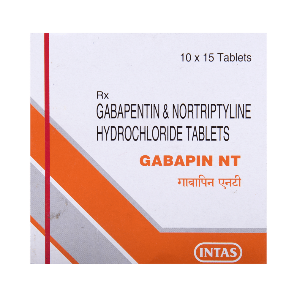 Gabapin NT Tablet is a combination of two medicines: Gabapentin and Nortriptyline. Gabapentin is an alpha 2 delta ligand which decreases the pain by modulating calcium channel activity of the nerve cells. Nortriptyline is a tricyclic antidepressant which increases the levels of chemical messengers (serotonin and noradrenaline) that stop the movement of pain signals in the brain. Together, they relieve neuropathic pain (pain from damaged nerves).