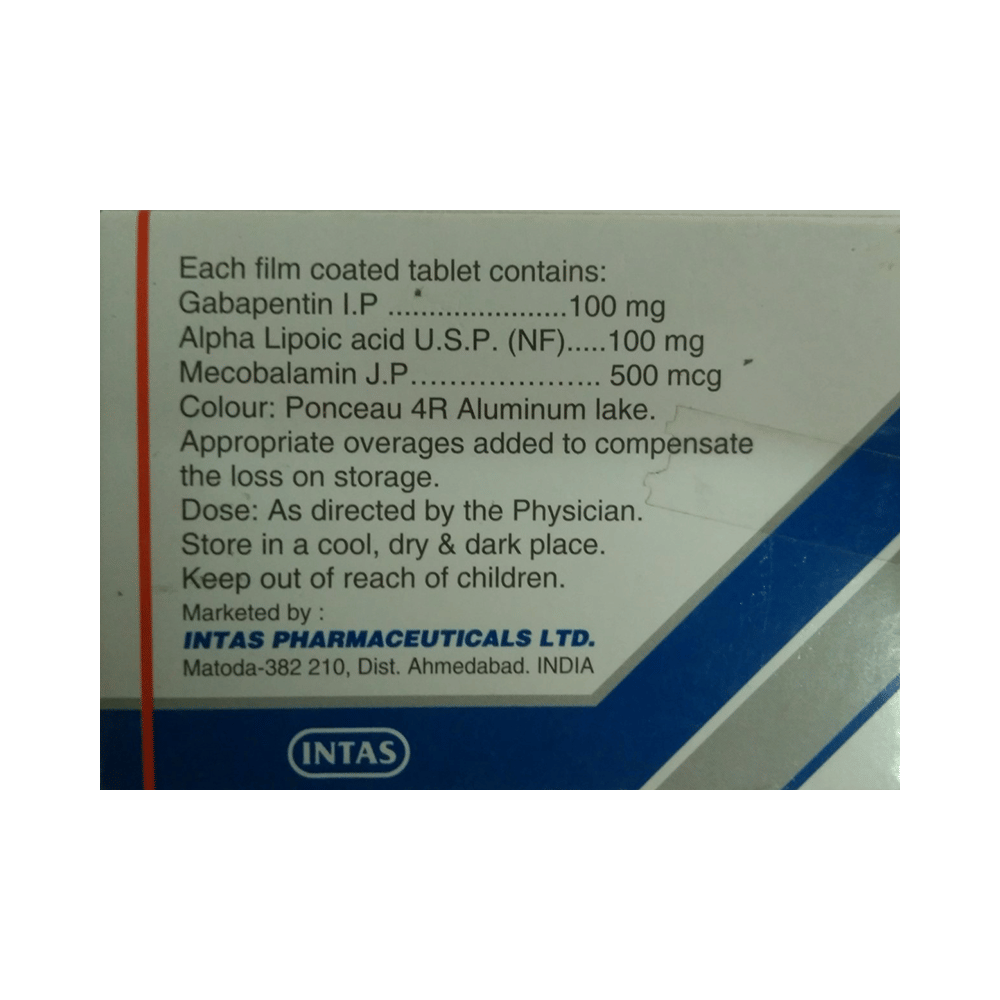 Salt Composition: Gabapentin (100mg) + Methylcobalamin (0.5mg) + Alpha Lipoic Acid (100mg)