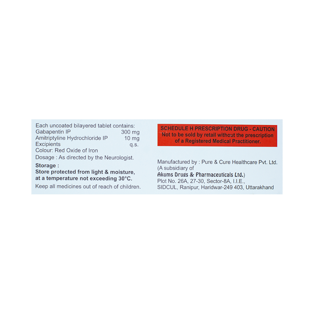 Salt Composition: Gabapentin (300mg) + Amitriptyline (10mg)