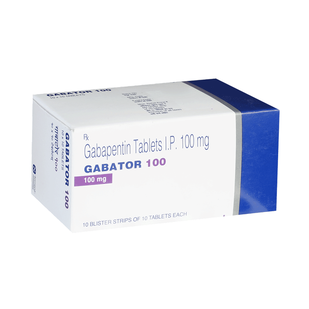 Gabator 100 Tablet is a medicine used to relieve the pain caused by nerve damage (neuropathic pain) due to various conditions like diabetes, shingles (herpes zoster infection), spinal cord injury, etc. It is also used to treat certain types of seizures (fits) in combination with other medicines. Gabator 100 Tablet belongs to the anti-epileptic group of medicines. You may take it with or without food, but it is important to take this medicine at the same time each day to get the most benefit. The exact dose and duration of treatment will depend on your condition and how you respond to it. Your doctor will probably start this medicine at a low dose and increase it gradually. It may take a few weeks for the medicine to work properly. Follow your doctor’s instructions and continue taking it regularly until your doctor advises you to stop. Do not miss any dose, otherwise, your condition may worsen.Most people taking Gabator 100 Tablet do not experience any side effects. The most common ones are feeling sleepy, dizzy, or tired (fatigue). These are usually mild and go away by themselves as your body gets used to the medicine. Most side effects are not serious and do not need medical attention. Talk to your doctor if any of the side effects persist or worry you.You should avoid drinking alcohol along with this medicine as it may lead to excessive sleepiness and dizziness. Let your doctor know right away if you develop any unusual mood changes like anxiety, agitation, depression, or thoughts about harming yourself.Before taking Gabator 100 Tablet, you should tell your doctor if you have any kidney-related problems or if you are more than 65 years old. Your doctor may prescribe a different dose in such people. Women who are pregnant, breastfeeding, or planning to become pregnant should also consult their doctor before using this medicine.