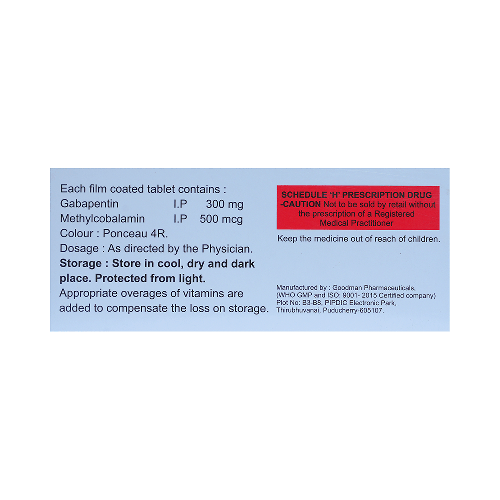 Salt Composition: Gabapentin (300mg) + Methylcobalamin (500mcg)