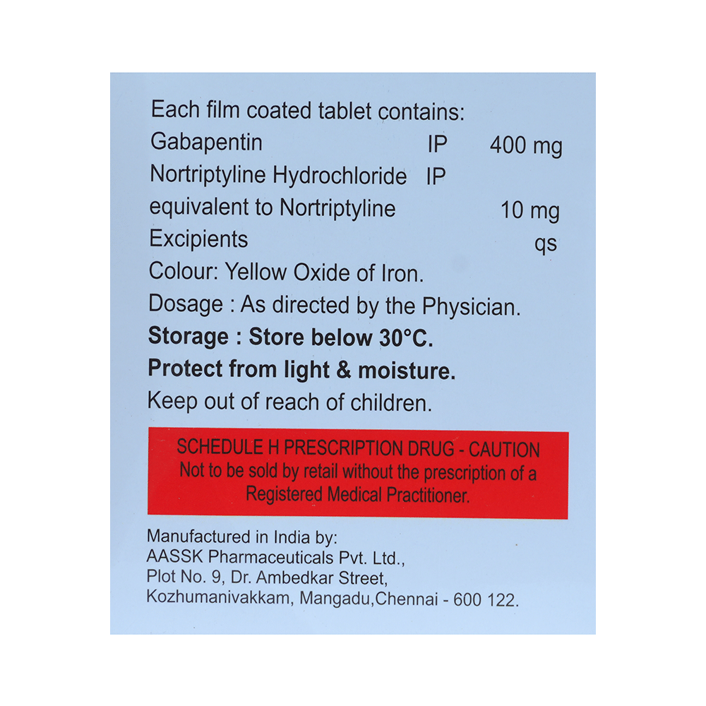 Salt Composition: Gabapentin (400mg) + Nortriptyline (10mg)