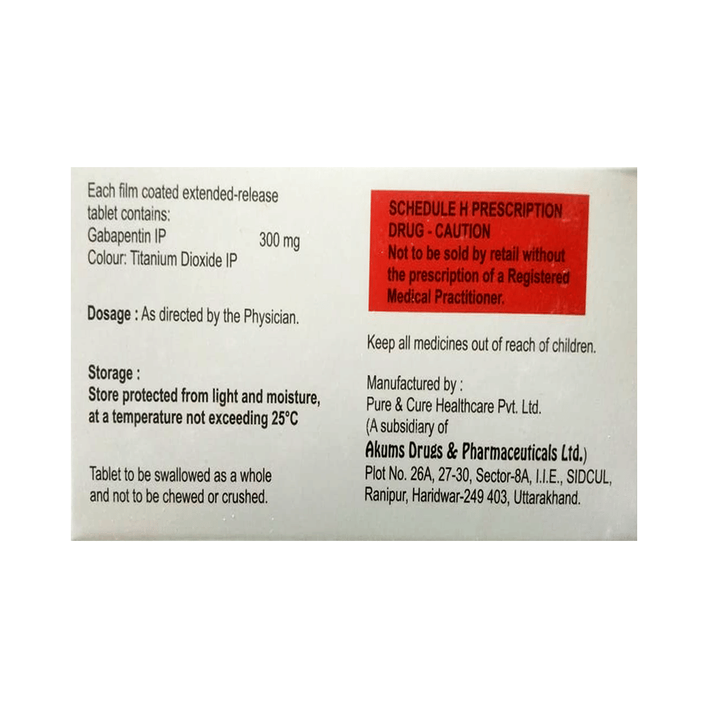 In Neuropathic painGabden-GRS 300 Tablet ER is used to treat long-lasting (chronic) pain caused by nerve damage due to diabetes, shingles or spinal cord injury. It reduces pain and its associated symptoms such as mood changes, sleep problems, and tiredness. It is thought to work by interfering with pain signals that travel through the damaged nerves and the brain. Taking this medicine regularly will improve your physical and social functioning and overall quality of life. It takes a few weeks to work so you need to take it regularly even if you feel it is not doing any good. Once your symptoms have gone you should still keep taking the medicine until your doctor advises you to stop.In Epilepsy/SeizuresGabden-GRS 300 Tablet ER belongs to a group of medicines called anticonvulsants which is used to treat some forms of epilepsy in adults. It is thought to work by slowing down nerve impulses in the brain which cause seizures (fits). It helps reduce symptoms such as confusion, uncontrollable jerking movements, loss of awareness and fear or anxiety. It will help you go about your daily activities with more confidence and may allow you to do some activities that you would otherwise be forbidden or scared to do (such as swimming and driving). It can take a few weeks for this medicine to work and during this time you may still have seizures. Do not stop using this medicine even if you feel well, until your doctor advises you to. Missing doses may trigger a seizure. show moreshow less