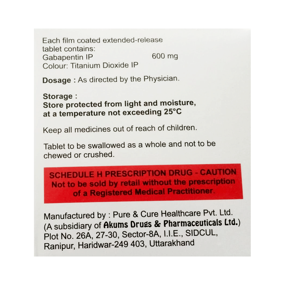 Salt Composition: Gabapentin (600mg)