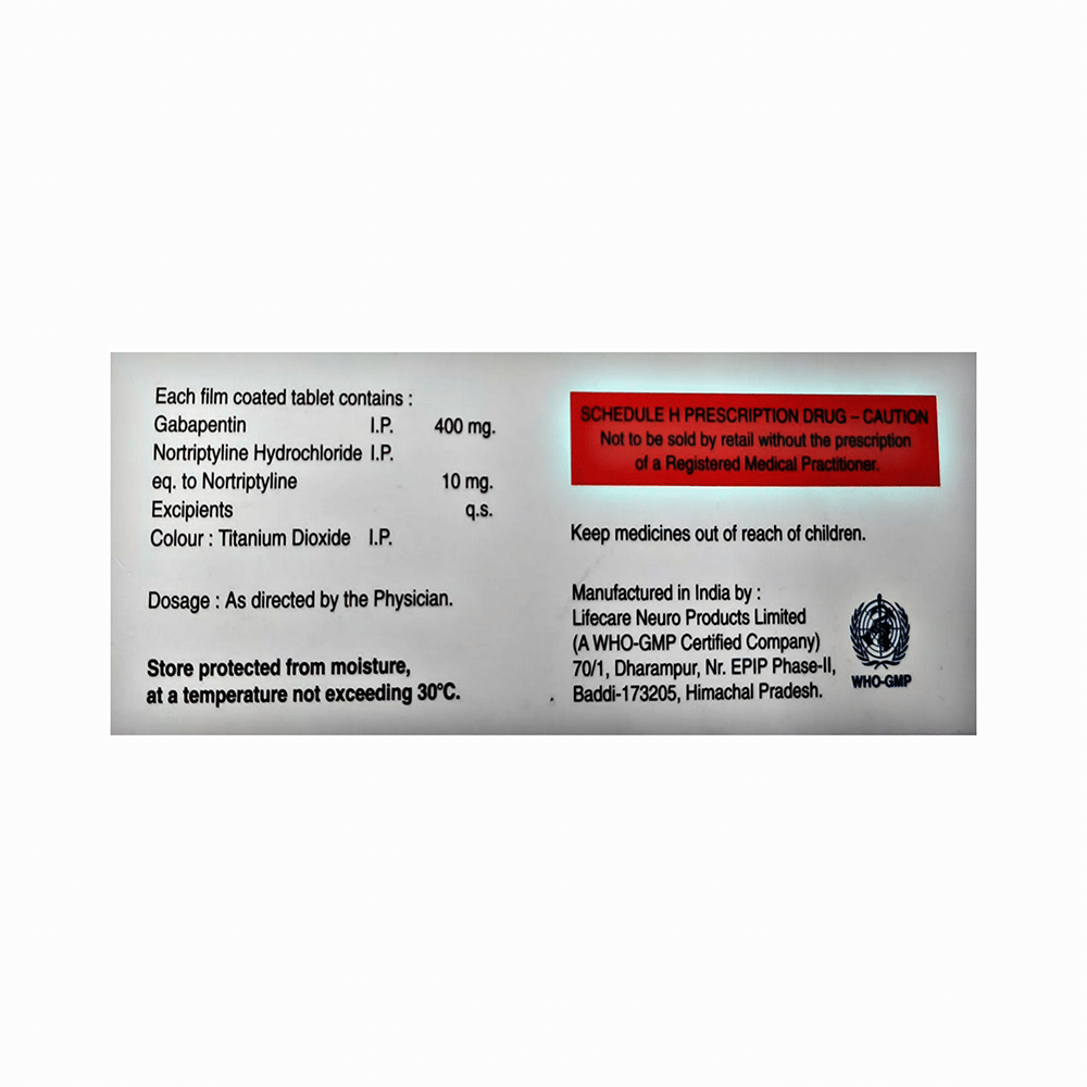 Salt Composition: Gabapentin (400mg) + Nortriptyline (10mg)