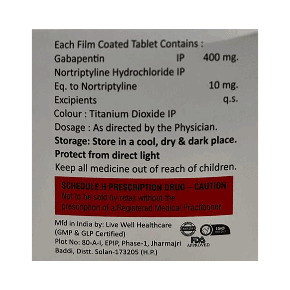 Salt Composition: Gabapentin (400mg) + Nortriptyline (10mg)