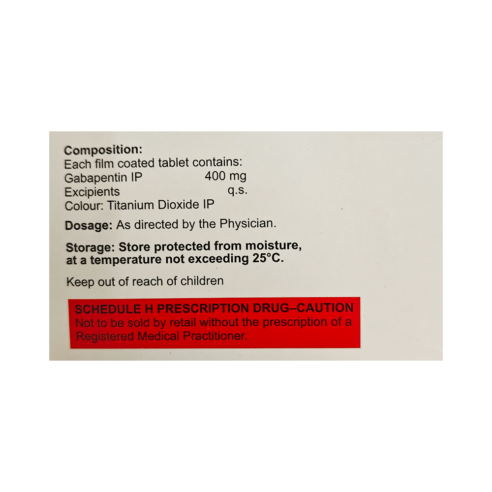 In Neuropathic painGabriva 400 Tablet is used to treat long-lasting (chronic) pain caused by nerve damage due to diabetes, shingles or spinal cord injury. It reduces pain and its associated symptoms such as mood changes, sleep problems, and tiredness. It is thought to work by interfering with pain signals that travel through the damaged nerves and the brain. Taking this medicine regularly will improve your physical and social functioning and overall quality of life. It takes a few weeks to work so you need to take it regularly even if you feel it is not doing any good. Once your symptoms have gone you should still keep taking the medicine until your doctor advises you to stop.In Epilepsy/SeizuresGabriva 400 Tablet belongs to a group of medicines called anticonvulsants which is used to treat some forms of epilepsy in adults. It is thought to work by slowing down nerve impulses in the brain which cause seizures (fits). It helps reduce symptoms such as confusion, uncontrollable jerking movements, loss of awareness and fear or anxiety. It will help you go about your daily activities with more confidence and may allow you to do some activities that you would otherwise be forbidden or scared to do (such as swimming and driving). It can take a few weeks for this medicine to work and during this time you may still have seizures. Do not stop using this medicine even if you feel well, until your doctor advises you to. Missing doses may trigger a seizure. show moreshow less