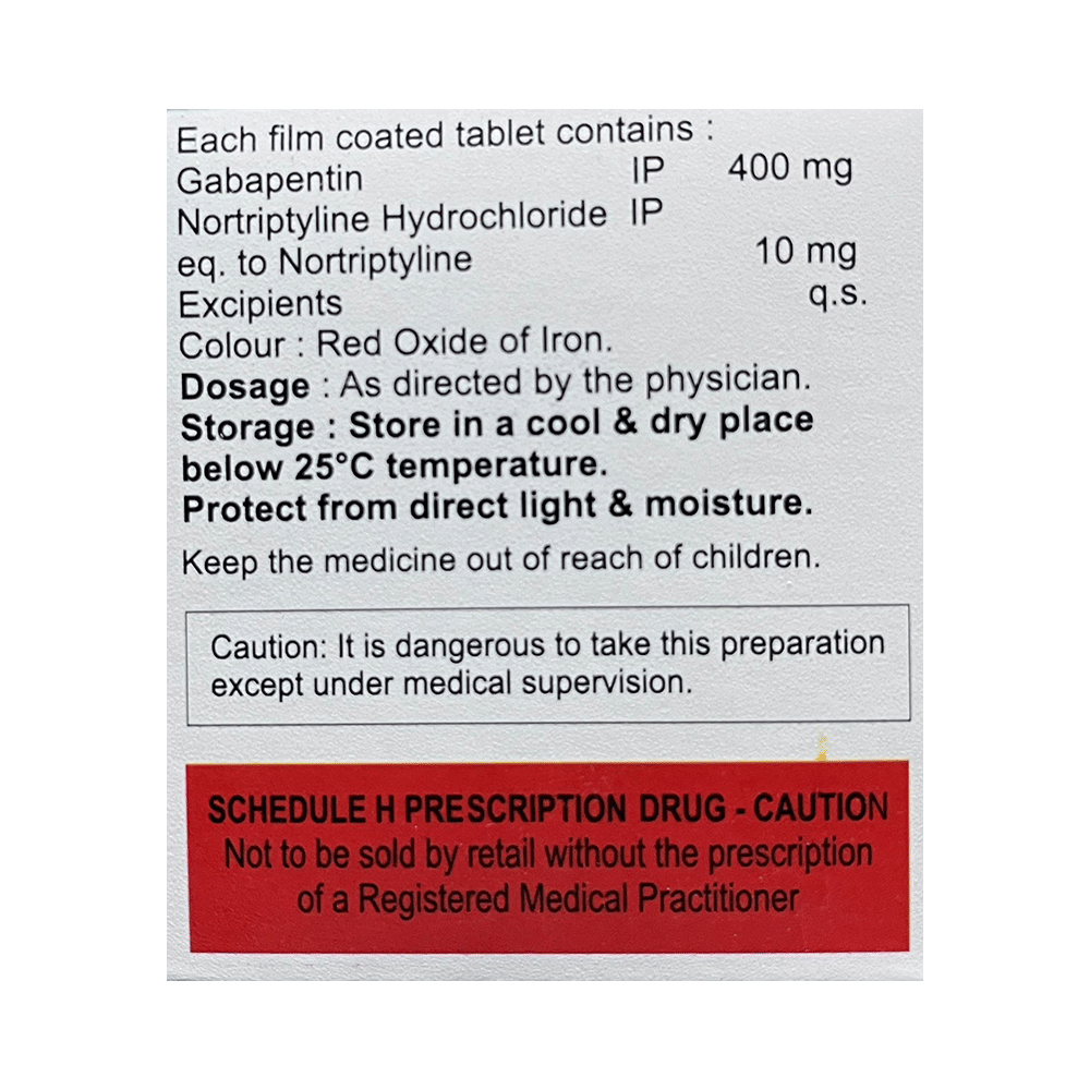 Salt Composition: Gabapentin (400mg) + Nortriptyline (10mg)