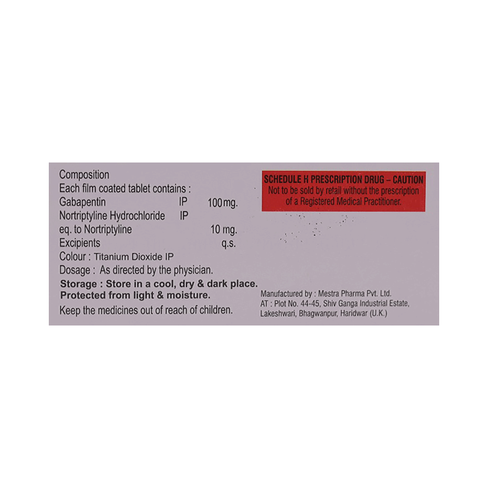 Salt Composition: Gabapentin (100mg) + Nortriptyline (10mg)