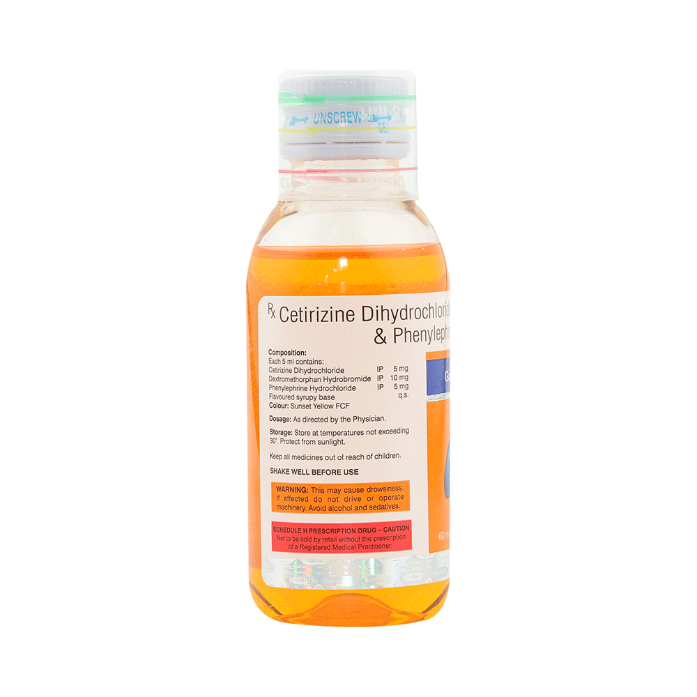 Salt Composition: Cetirizine (5mg/5ml) + Dextromethorphan Hydrobromide (10mg/5ml) + Phenylephrine (5mg/5ml)