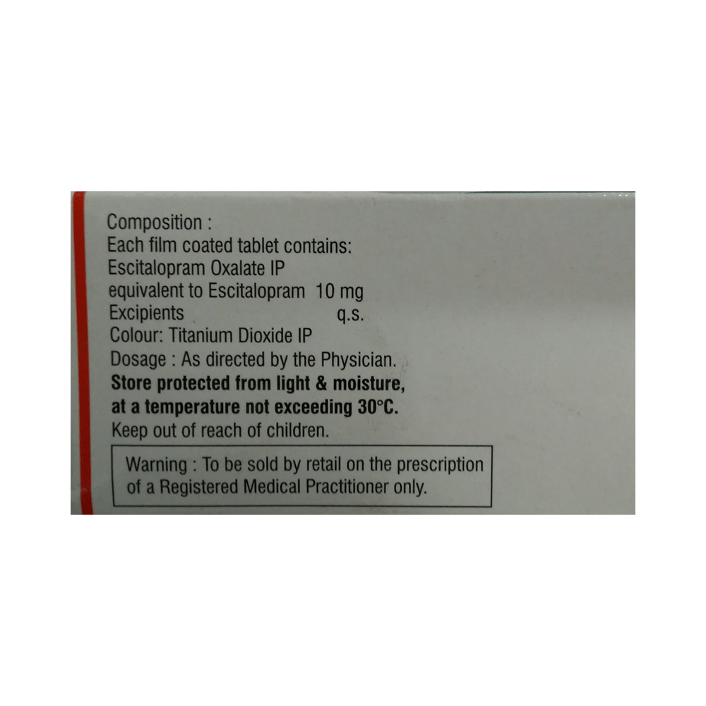 Salt Composition: Escitalopram Oxalate (10mg)
