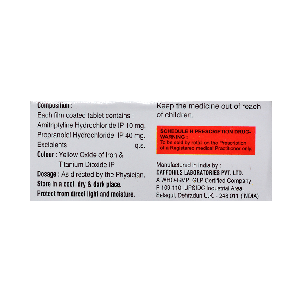 Salt Composition: Amitriptyline (10mg) + Propranolol (40mg)