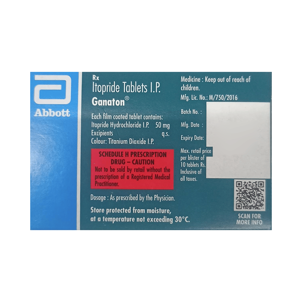 Ganaton Tablet is a prescription medicine used to treat nausea, vomiting, and prevent the feeling of fullness during or shortly after a meal. It also treats stomach discomfort, or heartburn caused by reduced gastrointestinal motility. Ganaton Tablet is taken before meals in a dose and duration as advised by the doctor. The dose you are given will depend on your condition and how you respond to the medicine. You should take this medicine until your doctor tells you to stop. Let your doctor know about all other medications you are taking as some may affect, or be affected by this medicine.The most common side effects of this medicine are diarrhea and abdominal pain. They are temporary and usually resolve with time. Contact your doctor if you are at all concerned about the side effects. It may also cause dizziness and sleepiness, so do not drive or do anything that requires mental focus until you know how this medicine affects you. Avoid drinking alcohol while taking this medicine as it can worsen your sleepiness. This medicine may also cause diarrhea, so it is better to take plenty of fluids while taking this medicine as it may help to prevent dehydration.Before taking this medicine, you should let your doctor know if you have liver or kidney problems. Pregnant or breastfeeding women should also consult their doctor.