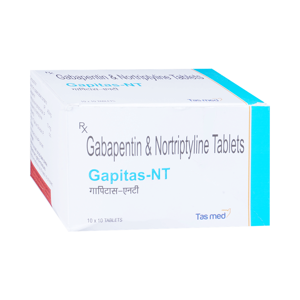 Gapitas NT 400mg/10mg Tablet is a combination medicine used for the treatment of neuropathic pain. This medicine decreases the pain by stopping the movement of pain signals to the brain. Gapitas NT 400mg/10mg Tablet is taken by mouth, with or without food and preferably at night. It is advised to take it at a fixed time each day to maintain a consistent level of medicine in the blood. In case you miss a dose of this medicine, take it as soon as you remember. Finish the full course of treatment even if you feel better. It is important not to stop taking this medicine suddenly without talking to the doctor as it may worsen your symptoms.Some common side effects of this medicine constipation, difficulty in urination, weight gain, tiredness, and dryness in mouth. It may also cause dizziness and sleepiness, so do not drive or do anything that requires mental focus until you know how this medicine affects you. This medicine may cause weight gain and to control it, you should exercise regularly and take a balanced diet. Remember to inform the doctor if you develop any unusual changes in mood as this medicine may lead to suicidal thoughts.Before taking this medicine let your doctor know if you suffer from kidney or liver disease. Your doctor should also know about all other medicines you are taking as many of these may make this medicine less effective or change the way it works. Inform your doctor if you are pregnant, planning pregnancy or breastfeeding.