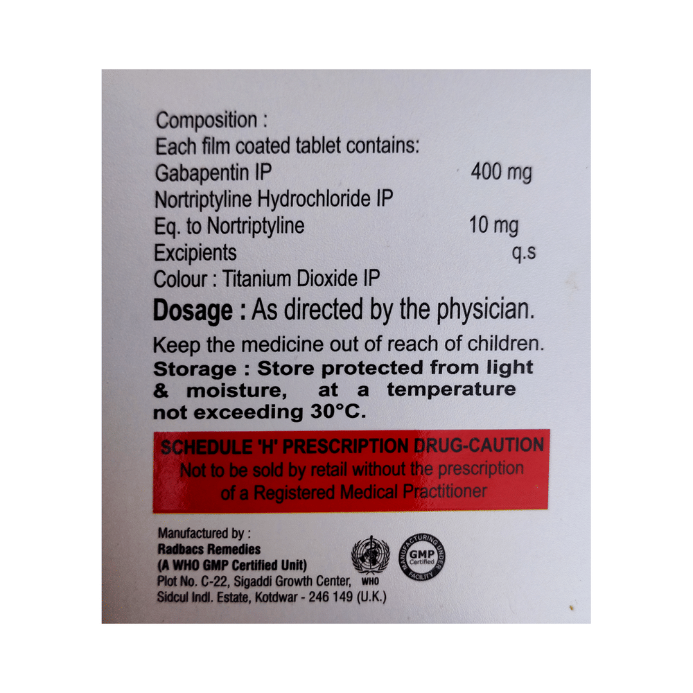 Salt Composition: Gabapentin (400mg) + Nortriptyline (10mg)