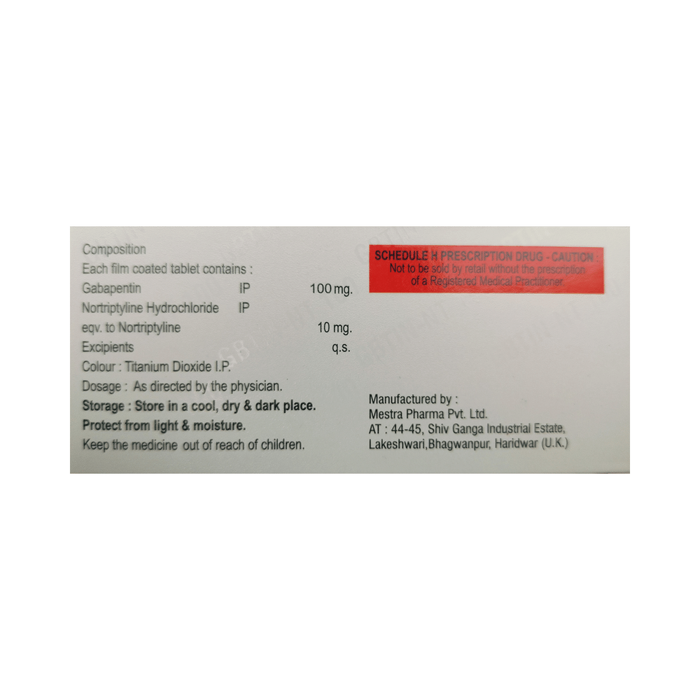 Salt Composition: Gabapentin (100mg) + Nortriptyline (10mg)