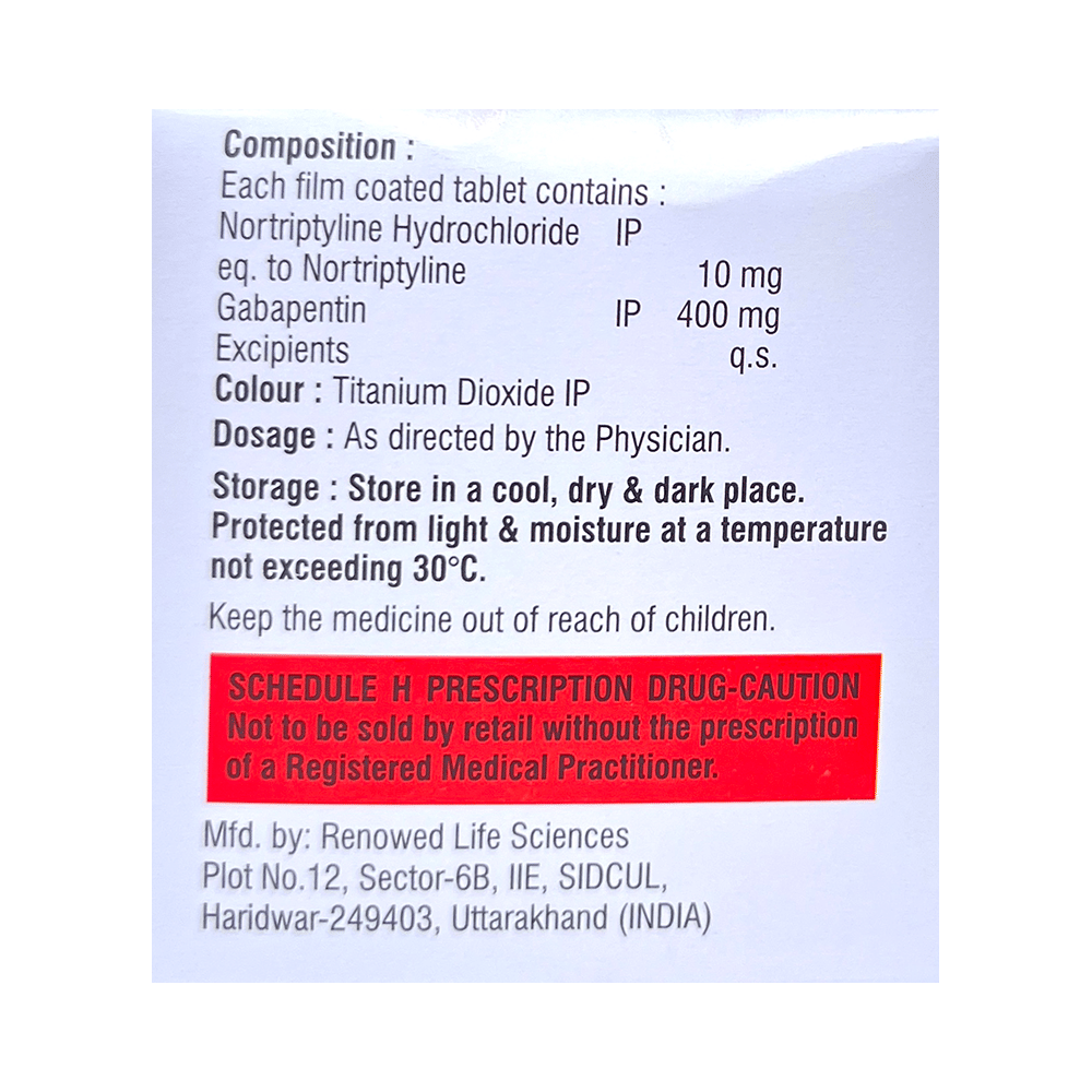 Salt Composition: Gabapentin (400mg) + Nortriptyline (10mg)