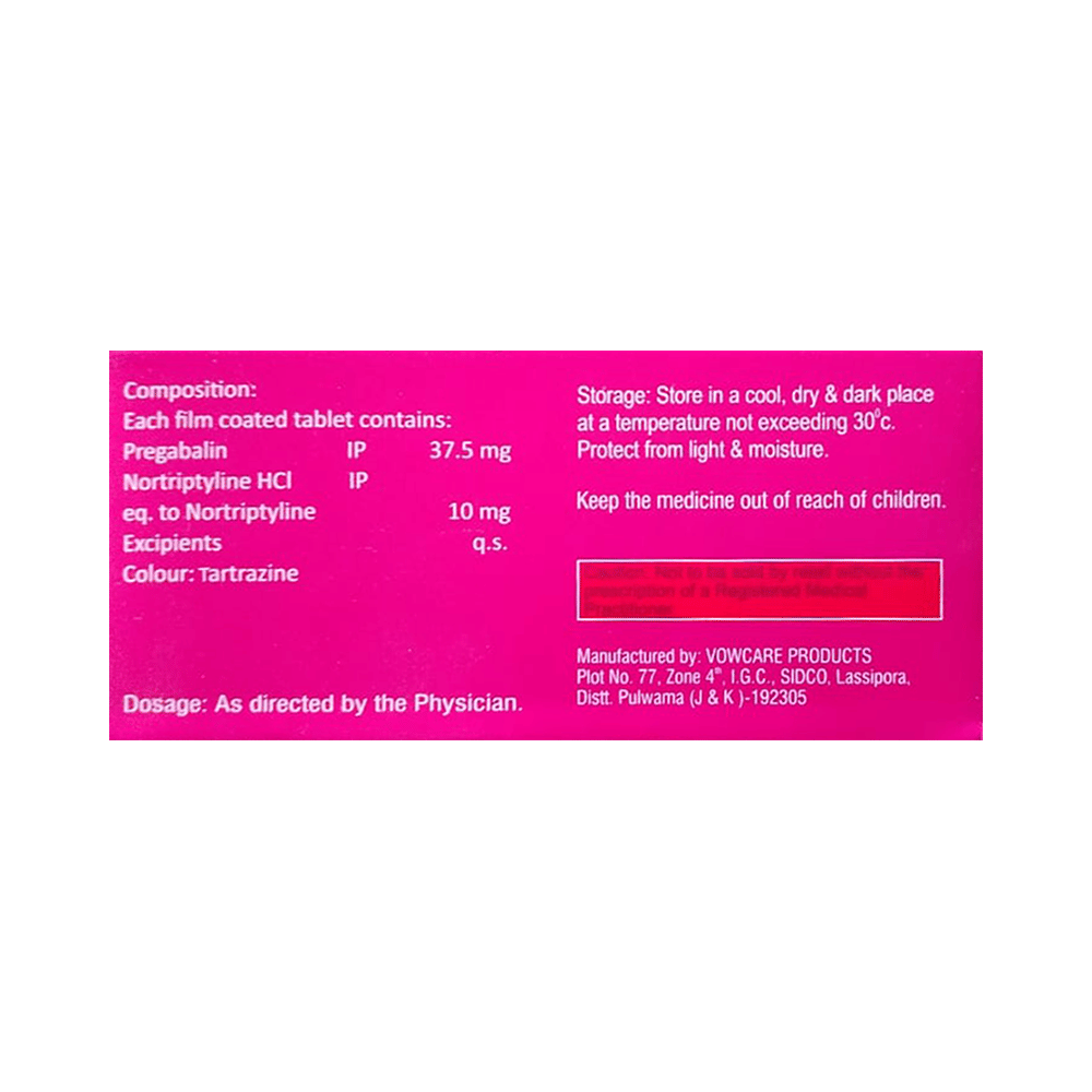 Salt Composition: Pregabalin (37.5mg) + Nortriptyline (10mg)