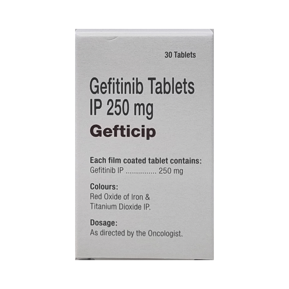 Gefticip Tablet is used in the treatment of non-small cell lung cancer. It is used in patients in which it has spread to other parts of the body, who have abnormal epidermal growth factor receptor (EGFR) genes, and who have not had previous treatment for cancer. Gefticip Tablet should be taken in a dose as recommended by the doctor. You should continue to take it as long as your doctor advises for it. The duration of treatment varies according to your need and response to treatment. Your doctor may advice for regular monitoring of liver function while your taking this medicine.Common side effects include diarrhea, dry skin, loss of appetite, and nausea. Drink plenty of fluids to reduce the risk of side effects. Inform your doctor if any of the side effects bother you or get worse. In case you develop ulceration in mouth, changes in your vision, or breathing difficulties than it is better to inform the doctor.Women who are undergoing treatment should use effective contraception method. It is important to avoid pregnancy during the treatment and for a month after completing the course of medicine. Let your doctor also know about all the other medications you are taking.