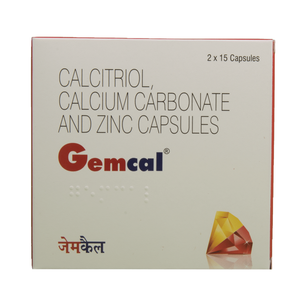 GEMcal Soft Gelatin Capsule is a combination of medicines that is used to treat nutritional deficiencies. It helps in the absorption of calcium and bone strengthening. It helps in proper growth and development of bones. It also helps in protein synthesis and the production of blood cells (red and white blood cells). GEMcal Soft Gelatin Capsule may be taken with or without food. It should be used in the dose and duration as prescribed by your doctor. It is advised to take this medicine at a fixed time.This medicine should not be taken more than the recommended dose. It is usually a safe medicine with very minimal or no side effects. However, if you experience severe diarrhea, vomiting, or constipation, you should consult your doctor without delay.Before taking this medicine, tell your doctor if you have any other health conditions. Inform your doctor if you are taking any other medicines or if you are pregnant or breastfeeding. It is advised not to take alcohol after taking this medicine.