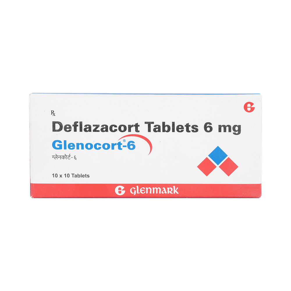 Glenocort 6mg Tablet belongs to a group of medicines called steroids. It is used for the treatment of various diseases and conditions such as inflammatory conditions and autoimmune conditions. Glenocort 6mg Tablet works by inhibiting the release of substances that cause swelling or by changing how the immune system works. It can be taken on an empty stomach or after food. Taking the medicine regularly at the right times increases its effectiveness. It is important to keep taking the medicine regularly until your doctor tells you it is safe to stop.Use of this medicine may cause some common side effects such as increased appetite, weight gain, frequent urge to urinate, Cushing syndrome, cough, upper respiratory tract infection, abnormal hair growth, obesity, and nasopharyngitis. If any of these side effects bother you, let your doctor know.Glenocort 6mg Tablet can make it harder for you to fight off infections. Tell your doctor if you have any signs of infection such as a fever or sore throat. Before taking the medicine, you should let your doctor know of all the other medicines you are taking. Pregnant and breastfeeding women should consult their doctors before taking the medicine.