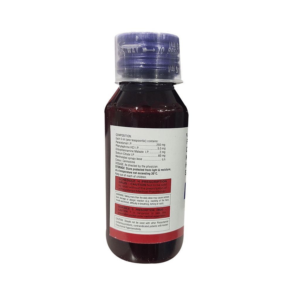Salt Composition: Chlorpheniramine Maleate (2mg/5ml) + Phenylephrine (5mg/5ml) + Paracetamol (250mg/5ml) + Sodium Citrate (60mg/5ml)