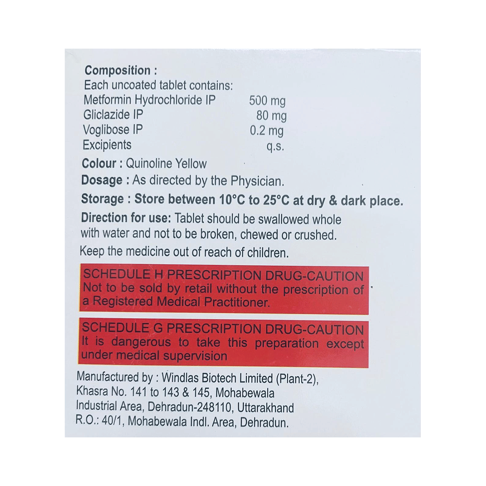 Salt Composition: Voglibose (0.2mg) + Metformin (500mg) + Gliclazide (80mg)