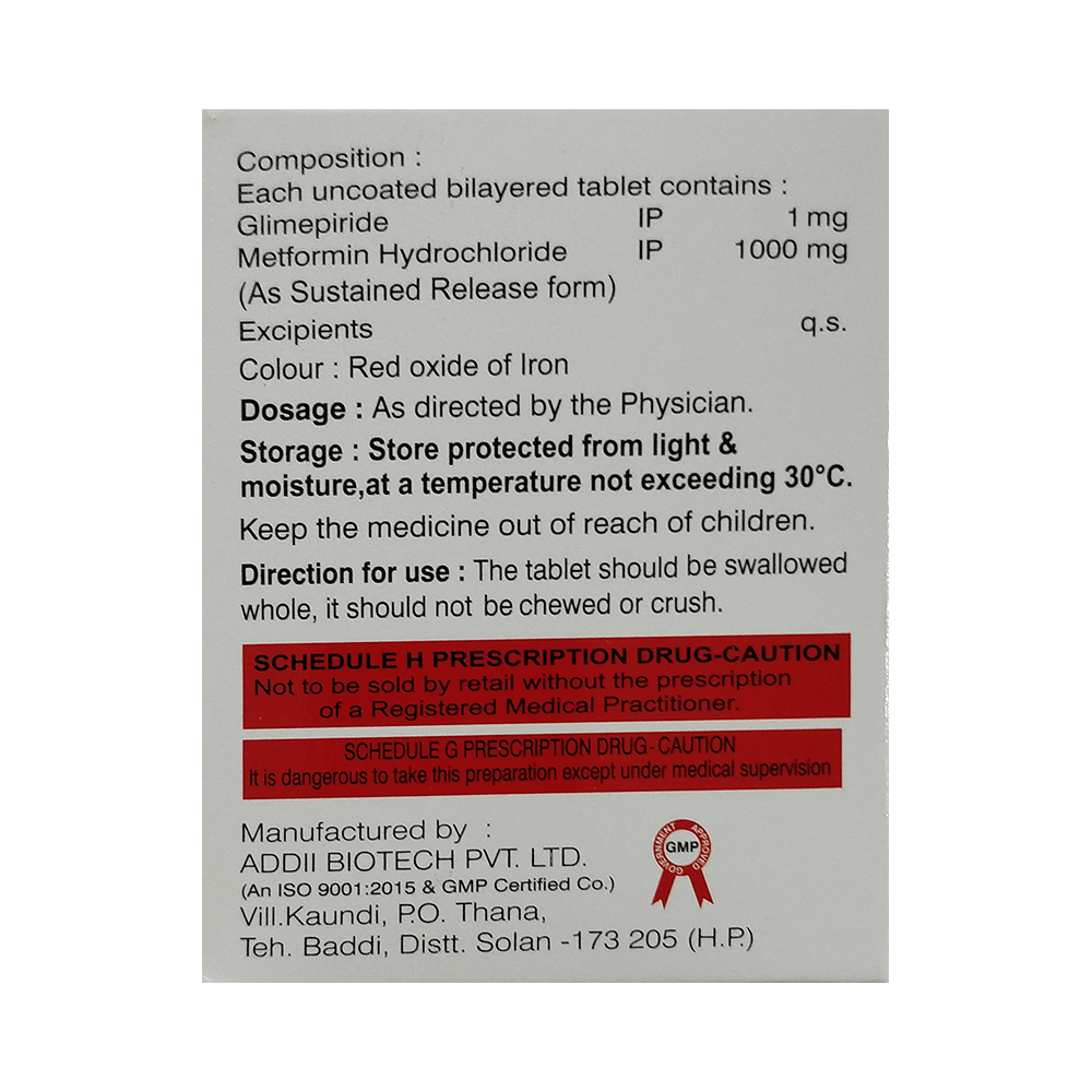 Salt Composition: Glimepiride (1mg) + Metformin (1000mg)