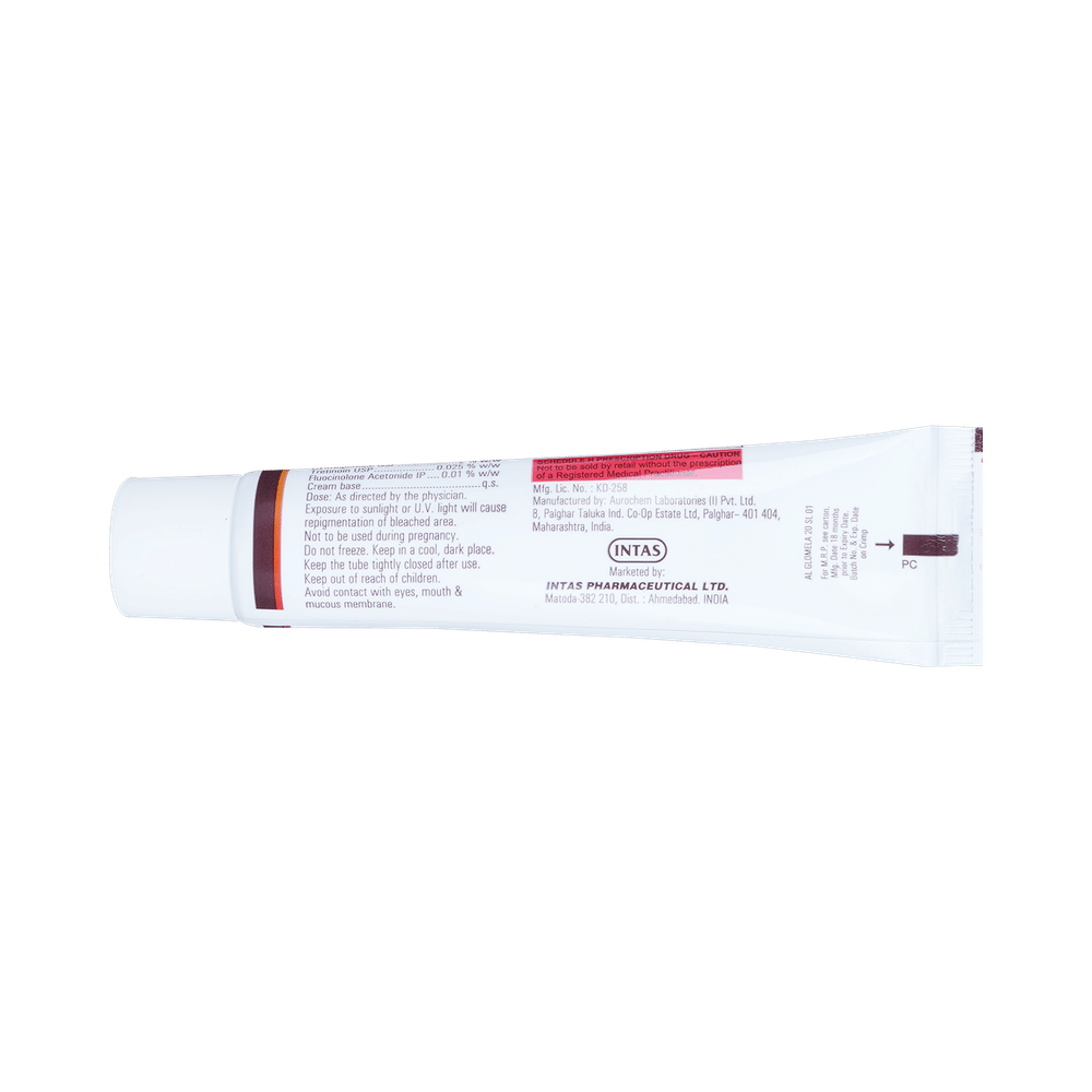 Salt Composition: Hydroquinone (2% w/w) + Tretinoin (0.025% w/w) + Fluocinolone acetonide (0.01% w/w)