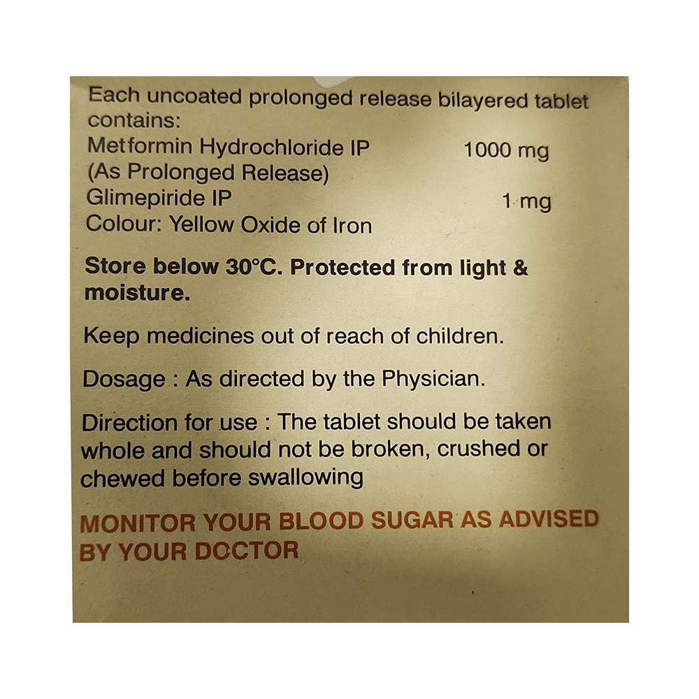 Salt Composition: Glimepiride (1mg) + Metformin (1000mg)