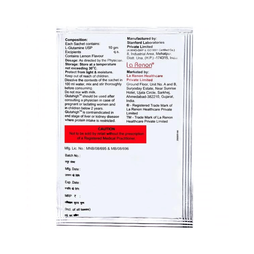 Glutahigh Powder Lemon is an important amino acid. It is used as a supplement to manage and reduce the complications of sickle cell disease. Glutahigh Powder Lemon reduces the oxidative stress in sickle cells and improves their flexibility to flow through the blood vessels. Glutahigh Powder Lemon is taken orally just before food intake. It should be used in the dose and duration prescribed by your doctor. It is advised to take this medicine at a fixed time to avoid missing a dose.It is usually a safe medicine, but some people may experience constipation, nausea, headache, abdominal pain, cough, and back pain. These are usually mild and resolve on their own. Let the doctor know if these side effects bother you or do not go away.Before taking this medicine, tell your doctor if you have any other health conditions. Inform your doctor if you are taking any other medicines and if you are pregnant or breastfeeding. Sometimes, Glutahigh Powder Lemon may also be used as a supplement for nutritional deficiencies.