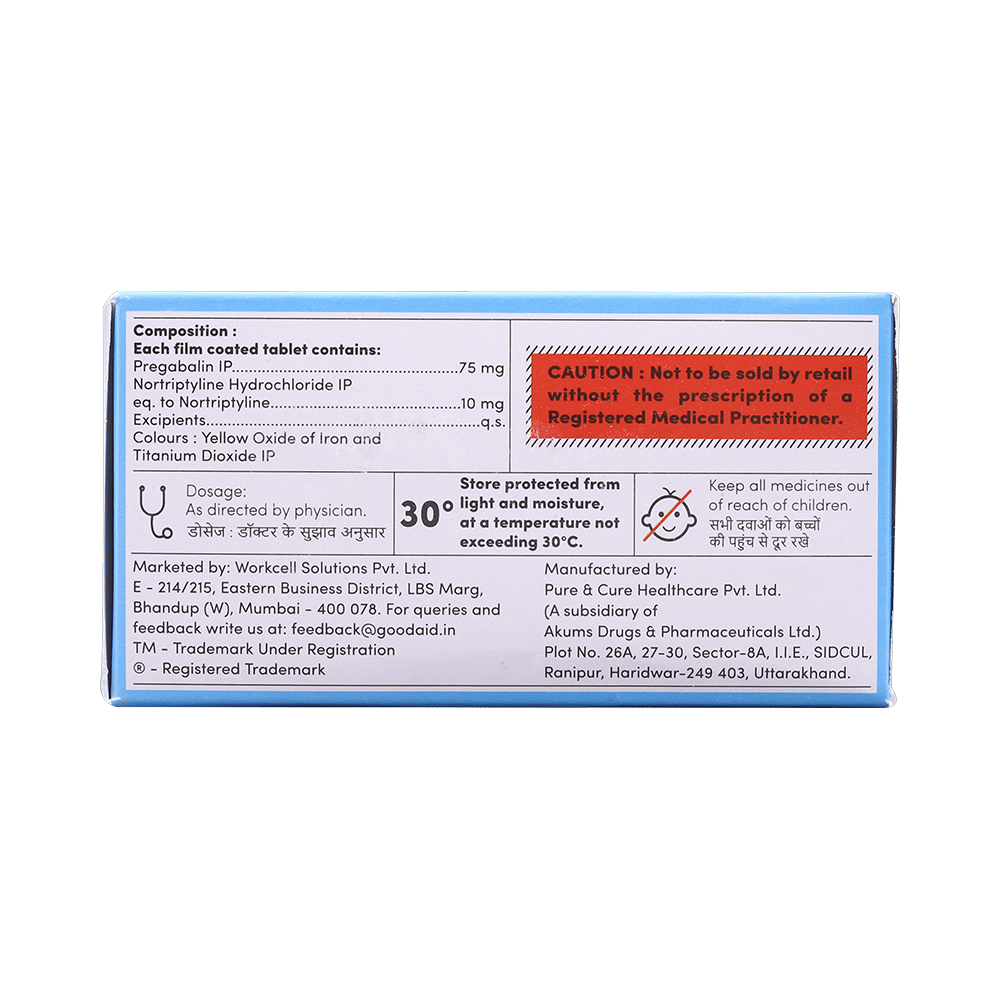 Salt Composition: Pregabalin (75mg) + Nortriptyline (10mg)