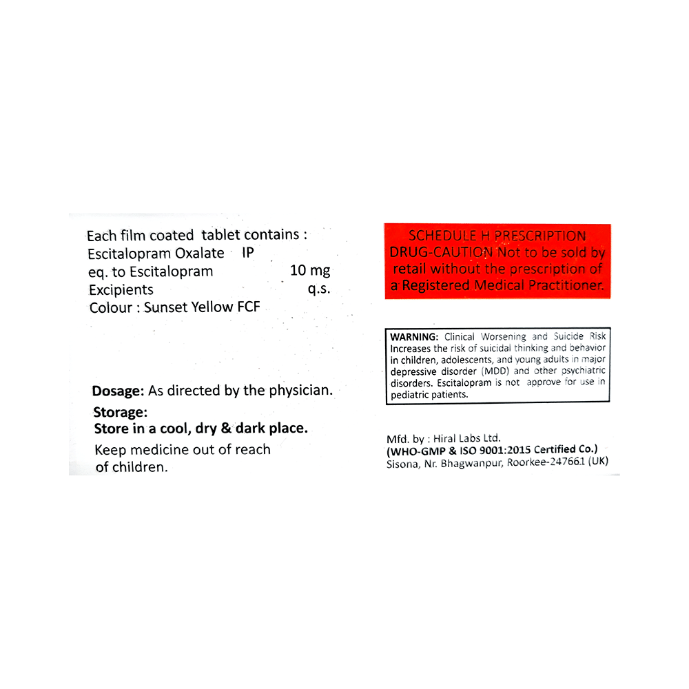 Salt Composition: Escitalopram Oxalate (10mg)