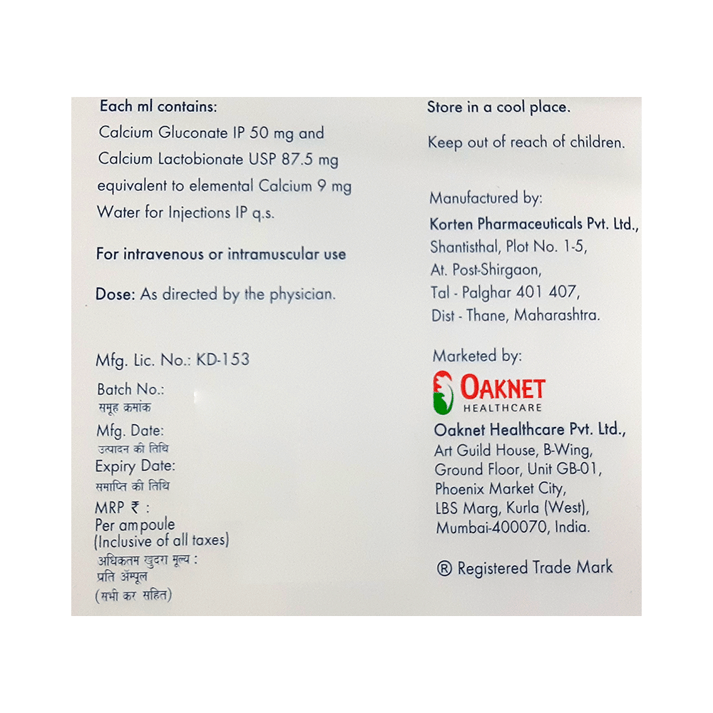 Salt Composition: Calcium Gluconate (50mg) + Calcium Lactobionate (87.5mg)