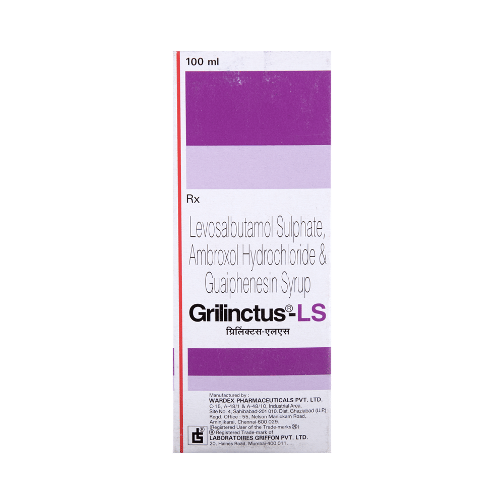 Grilinctus-LS Syrup is a combination medicine used in the treatment of cough with mucus. It thins mucus in the nose, windpipe, and lungs, making it easier to cough out. It also provides relief from runny nose, sneezing, itching, and watery eyes. Grilinctus-LS Syrup is taken with or without food in a dose and duration as advised by the doctor. The dose you are given will depend on your condition and how you respond to the medicine. You should keep taking this medicine for as long as your doctor recommends. If you stop treatment too early your symptoms may come back and your condition may worsen. Let your healthcare team know about all other medications you are taking as some may affect, or be affected by this medicine.The most common side effects are nausea, diarrhea, stomach pain, vomiting, muscle cramp, headache, skin rash, and increased heart rate. Most of these are temporary and usually resolve with time. Contact your doctor straight away if you are at all concerned about any of these side effects. This medicine can also cause sleepiness, so do not drive or do anything that requires mental focus until you know how this medicine affects you. Avoid drinking alcohol while taking this medicine as it can make sleepiness worse.Never support self-medication or recommend your medicine to another person. It is beneficial to have plenty of fluids while taking this medication. Before taking this medicine, you should tell your doctor if you are pregnant, planning pregnancy, or breastfeeding. You should also tell your doctor if you have any kidney or liver diseases so that your doctor can prescribe a suitable dose for you.