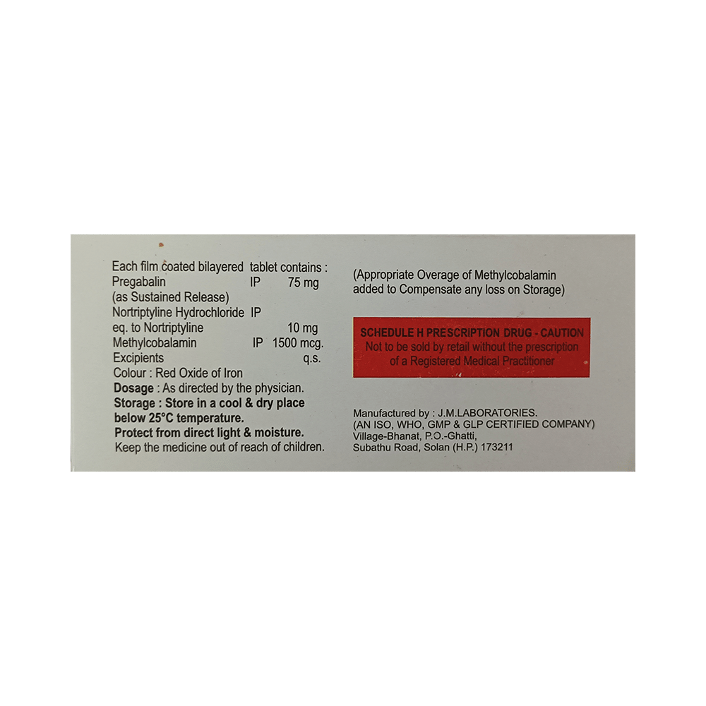 Salt Composition: Pregabalin (75mg) + Nortriptyline (10mg) + Methylcobalamin (1500mcg)