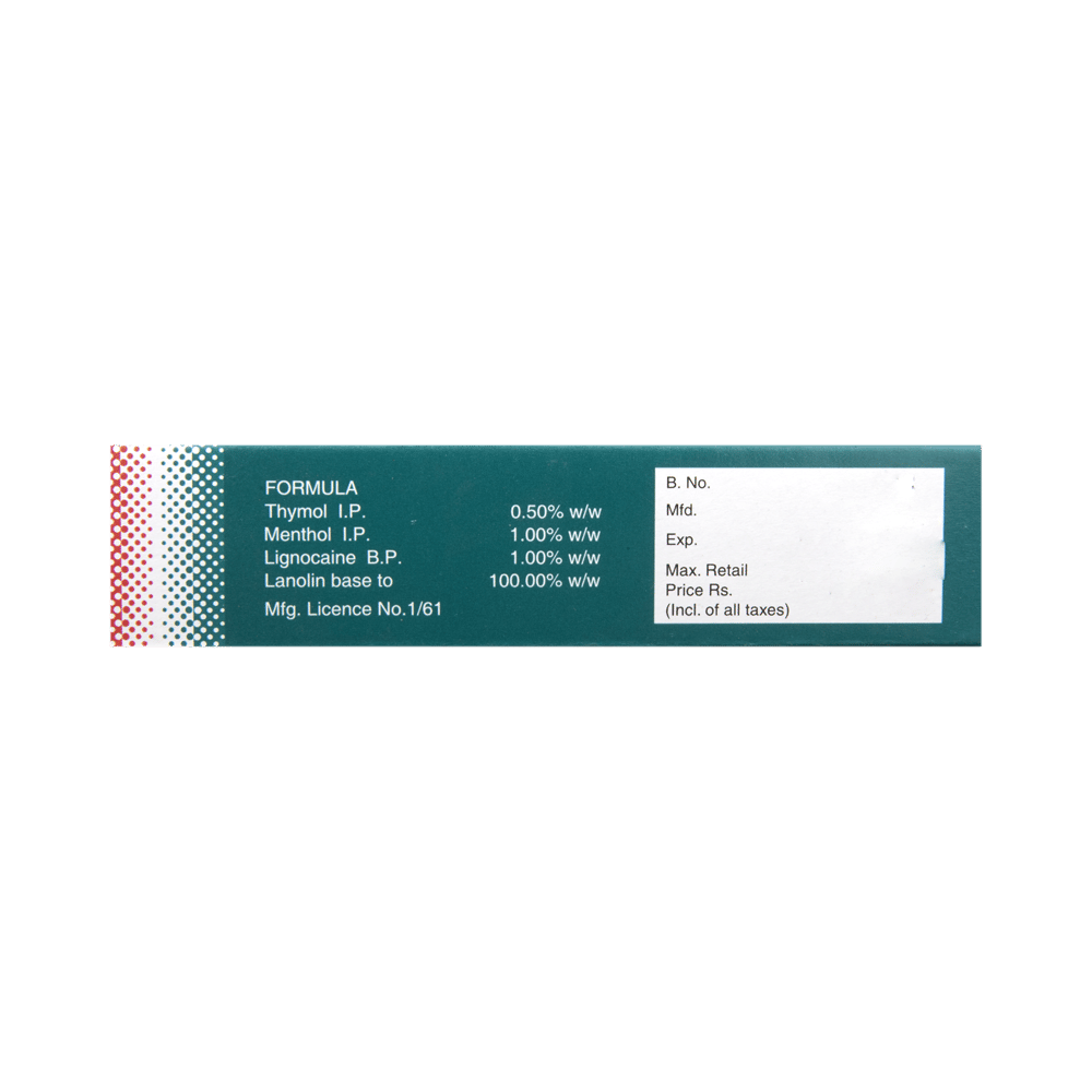 Salt Composition: Lanolin (100% w/w) + Lidocaine (1% w/w) + Menthol (1% w/w) + Thymol (0.5% w/w)