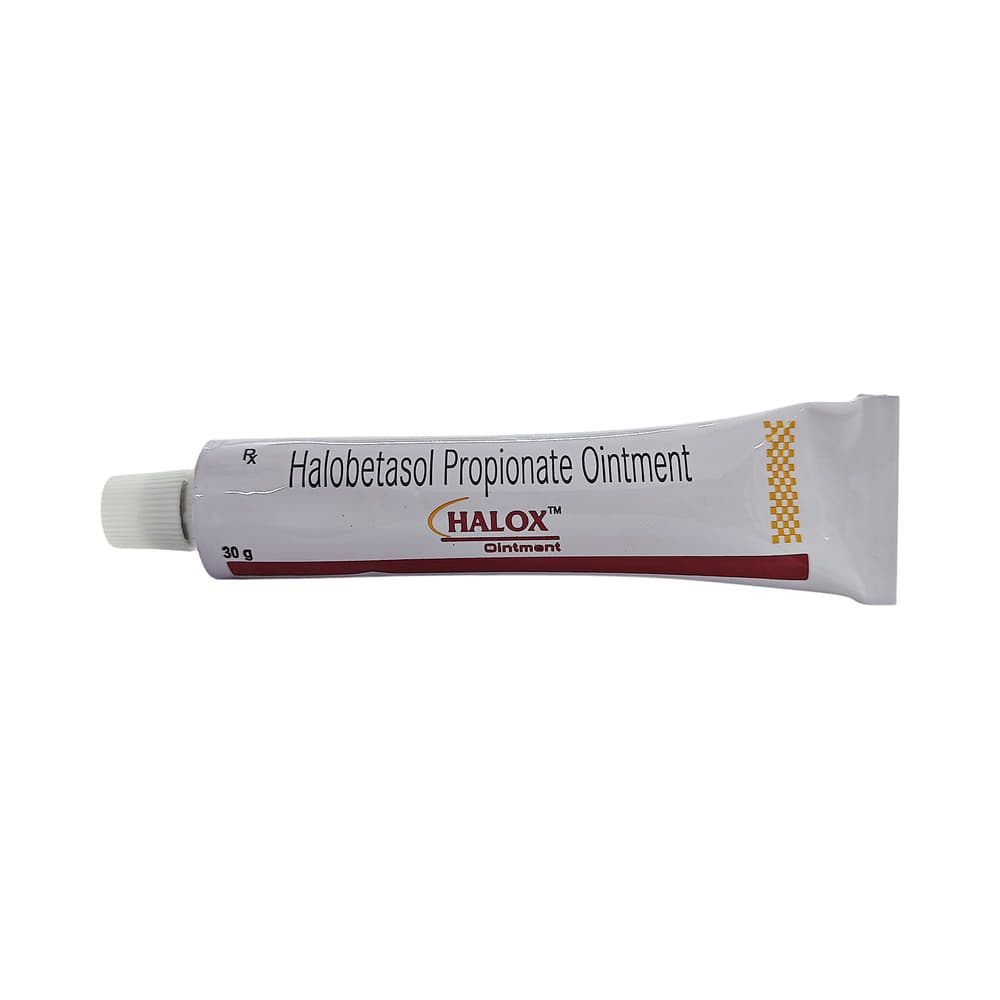 Halox Ointment belongs to a group of medicines called steroids. It is used for the treatment of allergic disorders and inflammatory skin conditions. It provides relief from swelling, redness, and itching in the affected area. Halox Ointment is for external use only. You should use it in the dose and duration as advised by your doctor. The affected area should be clean and dry before application of the ointment. You must wash your hands thoroughly before and after applying this medicine. This medicine should be used regularly to get the most benefit from it. Do not use more than you need, as it will not clear your condition faster, and some side effects may be increased. If your condition goes on for longer than four weeks or gets worse at any time, let your doctor know. You can help this medicine work better by keeping the affected areas clean, making sure they are dry, and washing your hands before and after treating the infection.Some common side effects include headache and application site pain. If the side effects bother you or do not go away, let your doctor know. Some people have a severe allergic reaction that needs urgent medical attention. Signs of this include rash, swelling of the lips, throat, or face, swallowing or breathing problems, dizziness, and nausea. Get emergency help if this happens.It is not likely that other medicines you take by mouth or injection will affect the way it works, but talk to your doctor before using it if you have used a similar cream before and had an allergic reaction.