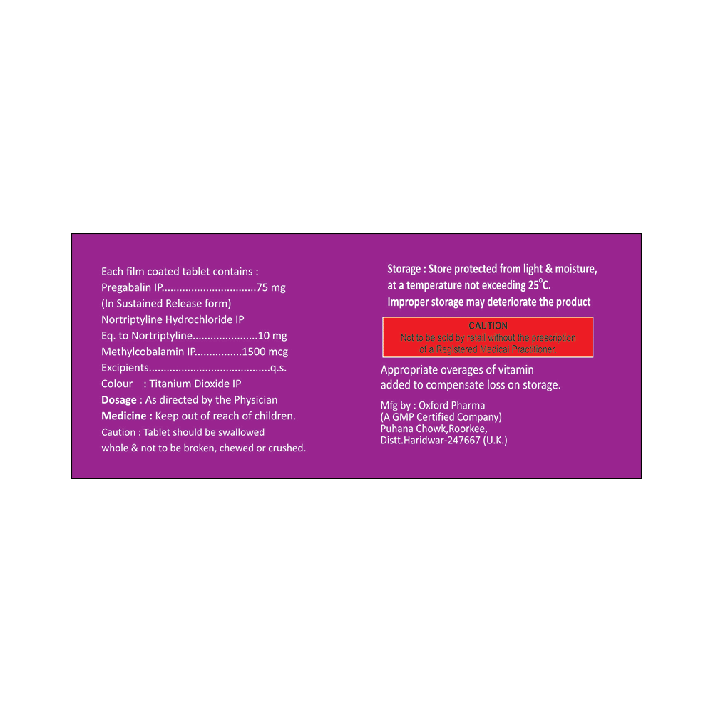 Salt Composition: Pregabalin (75mg) + Nortriptyline (10mg) + Methylcobalamin (1500mcg)