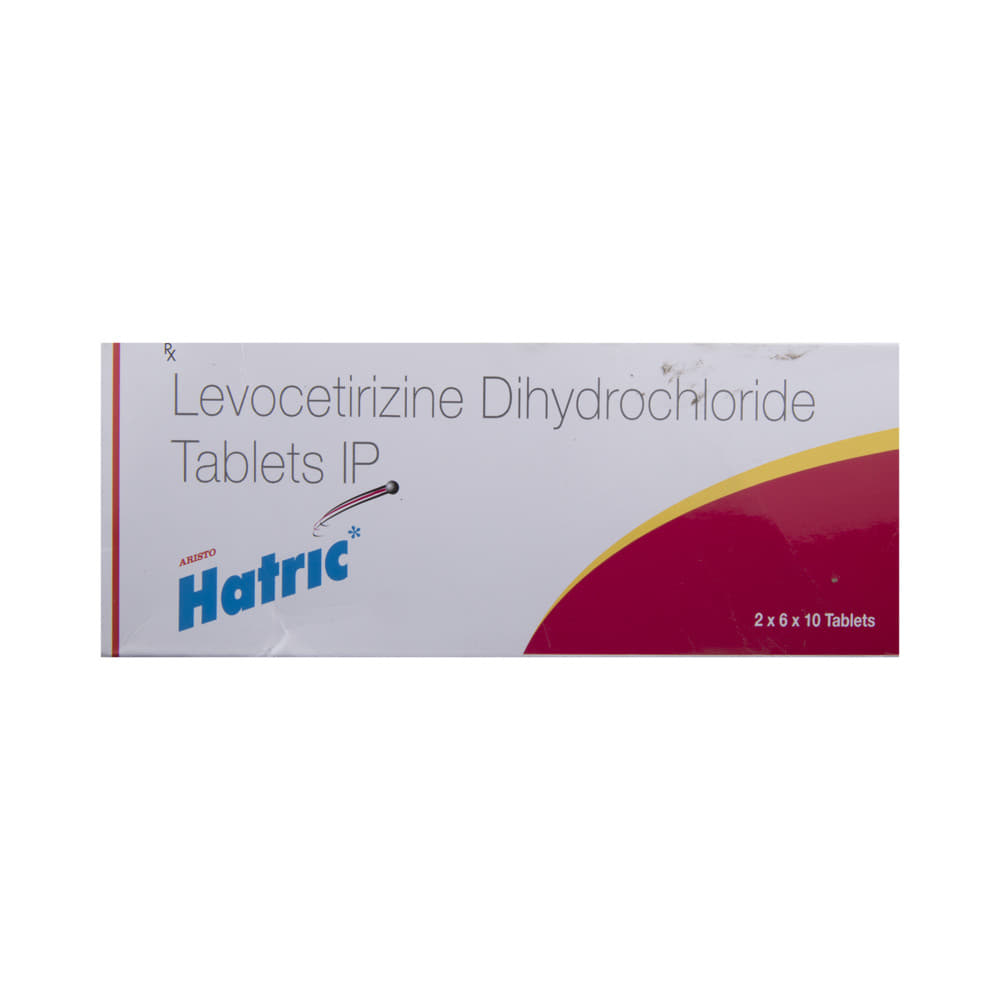 Hatric Tablet belongs to a group of medicines called antihistamines. It is used to treat various allergic conditions such as hay fever, conjunctivitis, some skin reactions such as eczema, hives, and reactions to bites and stings. It also relieves watery eyes, runny nose, sneezing, and itching. Hatric Tablet can be taken with or without food. The dose required by you may vary depending on what you are taking it for. This medicine is usually taken in the evening, but follow the advice of your doctor on how to take it. You may need this medicine only on days you have symptoms, but if you are taking it to prevent the symptoms then you should take it regularly. If you miss doses or stop taking it earlier than advised, your symptoms may come back.Common side effects include somnolence (sleepiness), dry mouth, fatigue, fever, cough, nasopharyngitis, and nosebleed. These are usually mild and go away after a couple of days as your body adjusts to it. Consult your doctor if any of the side effects persist or worry you.Before taking it, tell your doctor if you have any kidney problems or epilepsy (seizures). Your dose may need to be modified or this medicine may not suit you. Some other medicines can interact with this medicine so let your healthcare team know what else you are taking. You should also talk to your doctor before using this medicine if you are pregnant or breastfeeding, although it is not thought to be harmful.
