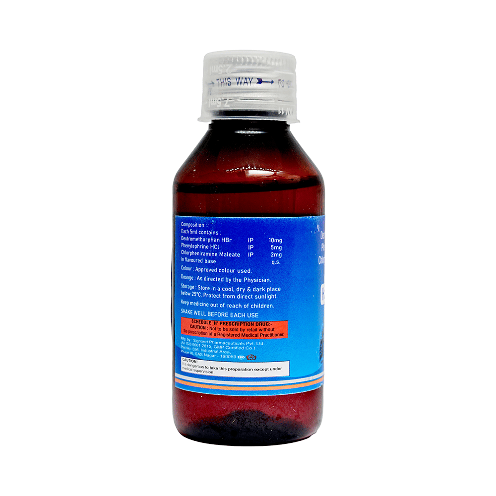 Salt Composition: Phenylephrine (5mg/5ml) + Chlorpheniramine Maleate (2mg/5ml) + Dextromethorphan Hydrobromide (10mg/5ml)