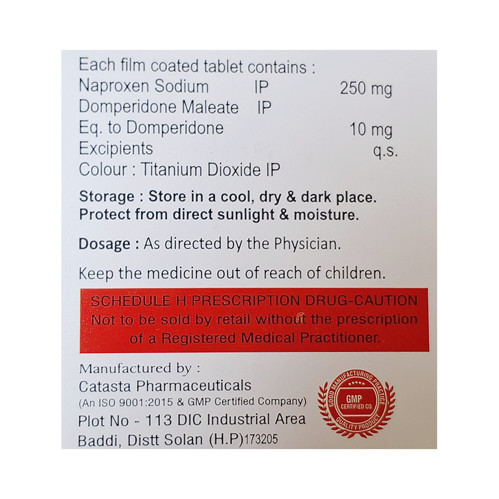 Salt Composition: Naproxen (250mg) + Domperidone (10mg)
