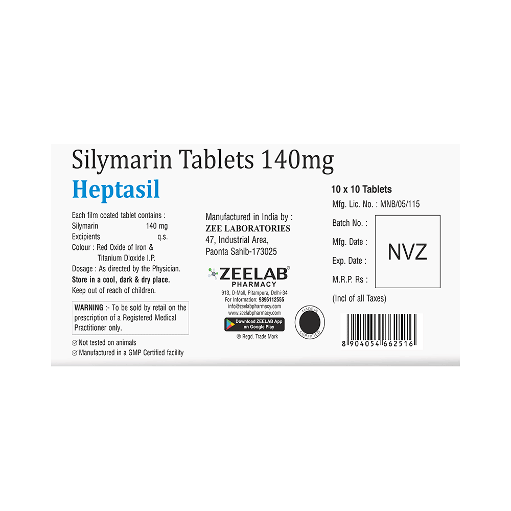 Heptasil Tablet is obtained from milk thistle seeds (Silybum marianum). It has antioxidant and anti-inflammatory properties that protect liver cells from harmful effects of toxic chemicals (called free radicals) as well as some other medicines.
