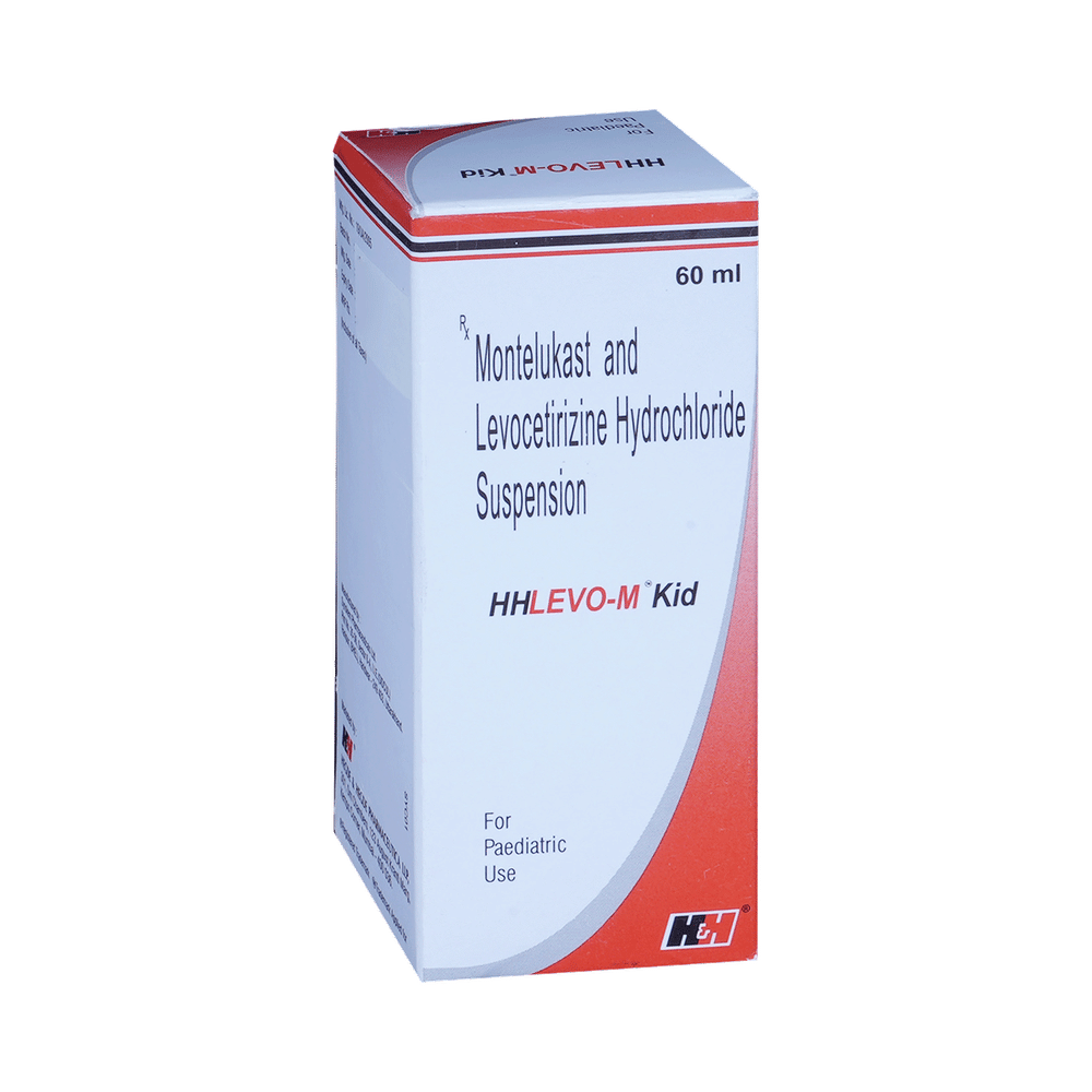 HHlevo-M Kid Suspension is commonly prescribed in children to treat symptoms of allergy such as runny nose, sneezing, itching, swelling, congestion, and watery eyes. It may also help in the treatment of asthma and skin allergies. Give this medicine to your child at a fixed time before or after food in the prescribed dose, time, and way. For asthma, prefer giving HHlevo-M Kid Suspension in the evening or 2 hours before physical activity. For allergy, it is best to give it either in the morning or in the evening, depending upon the time of onset of symptoms. In case your child has both, prefer giving it in the evening. If your child vomits within 30 minutes of taking this medicine, give the same dose again, but skip it if it’s already time for the next dose.Your child may start to feel better after a few regular doses. However, you must still complete the prescribed dose to ensure maximum benefit. Moreover, stopping the medicine abruptly may worsen your child’s condition. This medicine may cause some minor and temporary side effects like vomiting, diarrhea, nausea, dizziness, dry mouth, rash, and headache. Usually, these episodes subside once your child’s body adapts to the medicine. However, in case these effects persist or start bothering your child, consult your child’s doctor without any delay.Let your child’s doctor know if your child is already taking any medicines. Also, narrate your child’s complete medical history, including any prior episodes of allergy, heart problem, blood disorder, vascular disorders, birth defects, airway obstruction, lung anomaly, skin disorder, liver impairment, and kidney malfunction. This information is critical for dose alterations and in planning your child’s overall treatment.