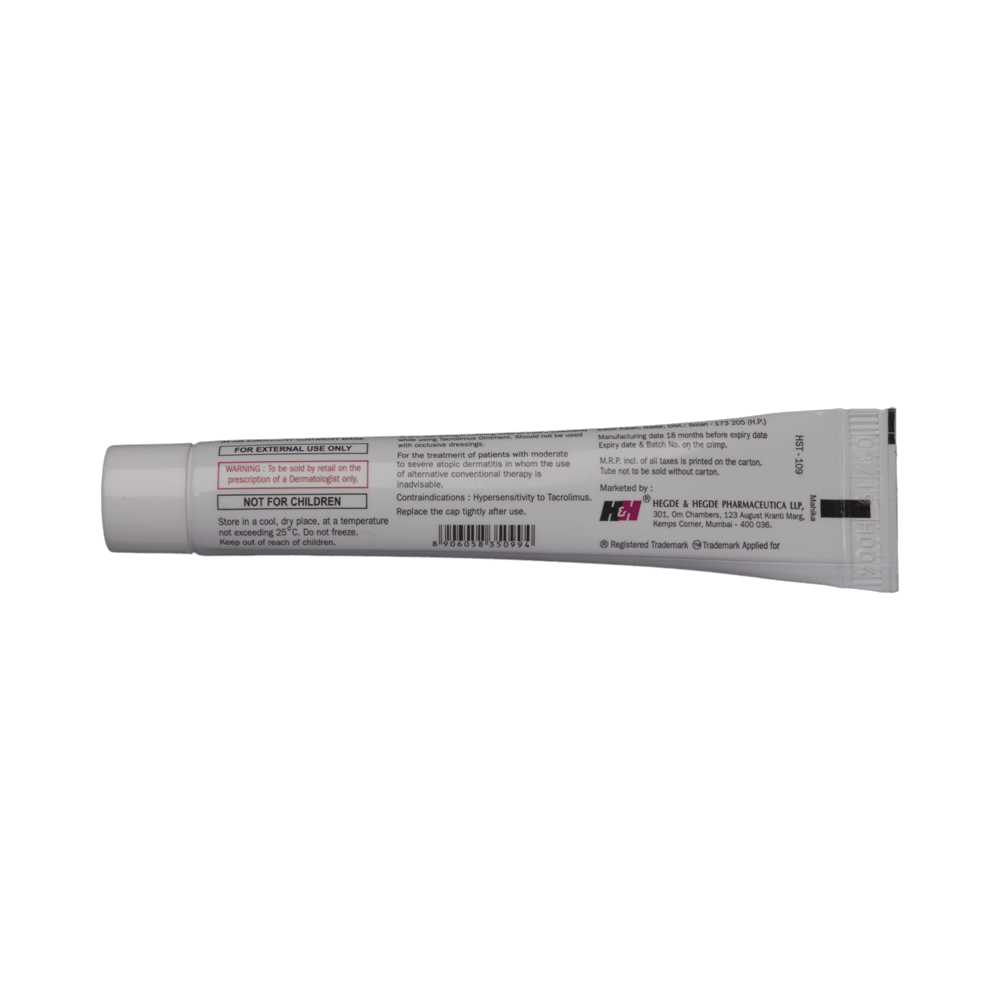 Hhmus 0.1% Ointment is used to treat eczema (atopic dermatitis). It works by suppressing the activity of certain immune cells that cause inflammation (redness and swelling) of the skin. This relieves itching and improves rashes in atopic dermatitis. Hhmus 0.1% Ointment is used for external use. It should be used 2-4 times a day on the affected area or use it as suggested by the doctor. It should be applied slowly and evenly to the skin until it is rubbed in. You should not use it too often and you should not cover the treated area with a bandage or plaster. You must inform your doctor if there’s no improvement even after two weeks of treatment or if the skin gets worse.Use of this medicine may cause some common side effects like erythema, headache, inflammation of hair follicle, and application site reaction like burning, irritation, itching, and redness. This medicine is not normally recommended during pregnancy or while breastfeeding unless it is clearly needed.