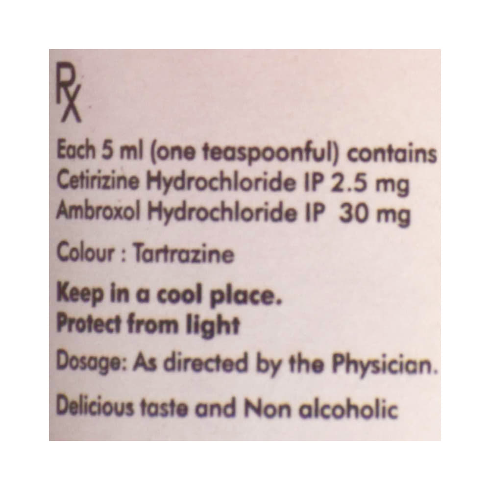 Salt Composition: Cetirizine (2.5mg/5ml) + Ambroxol (30mg/5ml)