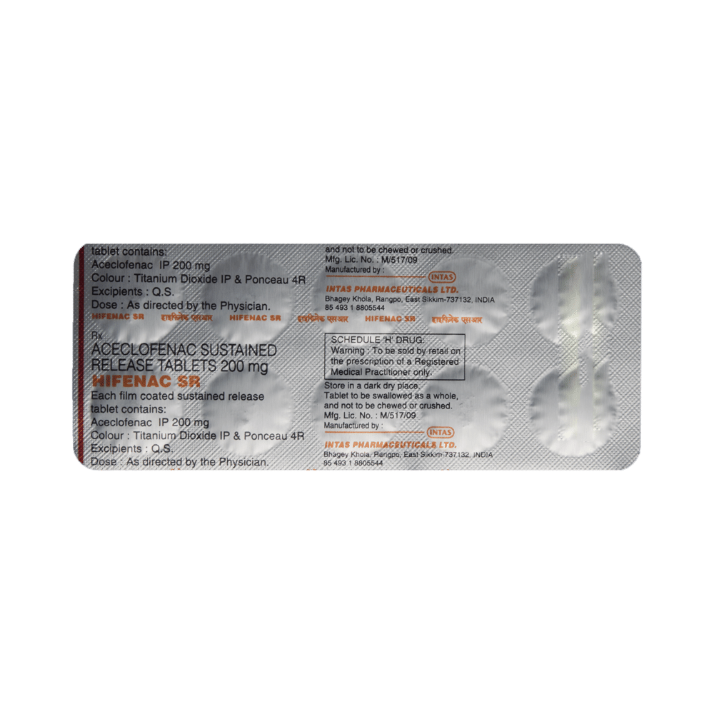 Hifenac SR Tablet is a non-steroidal anti-inflammatory drugs (NSAID). It works by blocking the release of certain chemical messengers that cause pain and inflammation (redness and swelling).