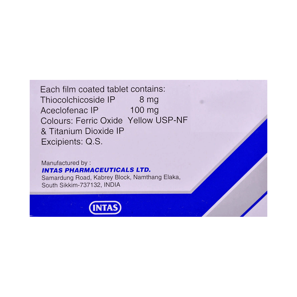 Salt Composition: Aceclofenac (100mg) + Thiocolchicoside (8mg)
